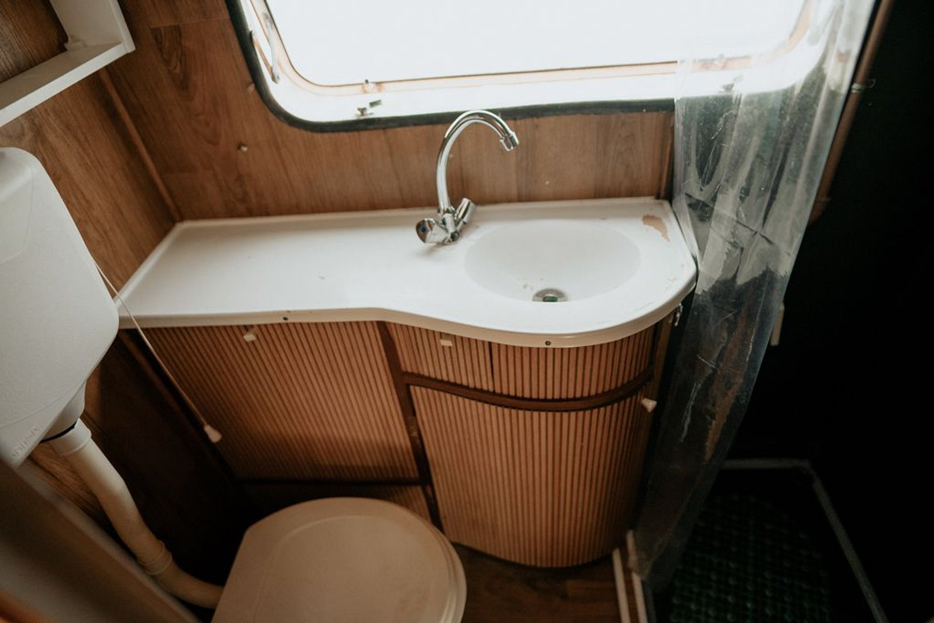 Banheiro: é pequenino e compacto, proporcional ao tamanho do trailer! Mas tem água bem quentinha!