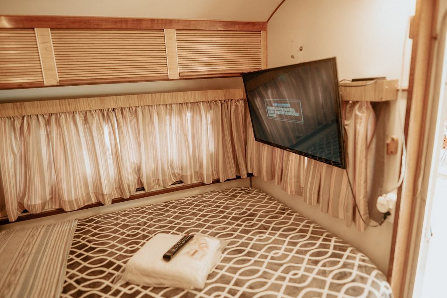 Salinha: bastante funcional (Mesinha que vira a segunda cama de casal) Montamos essa segunda cama de casal, somente se reservado para mais de 2 hóspedes. (Disponível somente em trailer que acomodam mais do que 2 hóspedes)