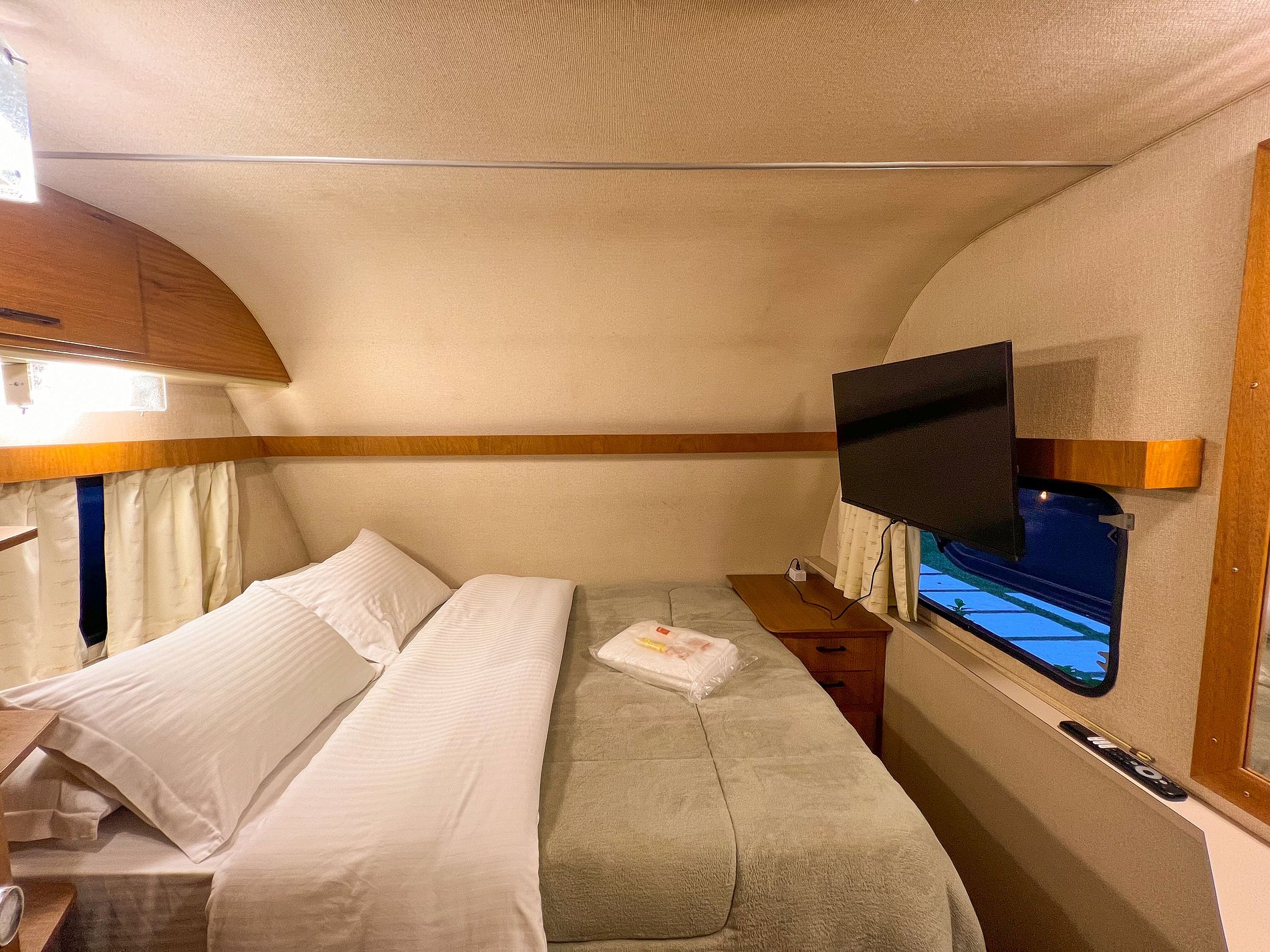 💭 Salinha: bastante funcional (Mesinha que vira a segunda cama de casal) Montamos essa segunda cama de casal, somente se reservado para mais de 2 hóspedes. (Disponível somente em trailer que acomodam mais do que 2 hóspedes)