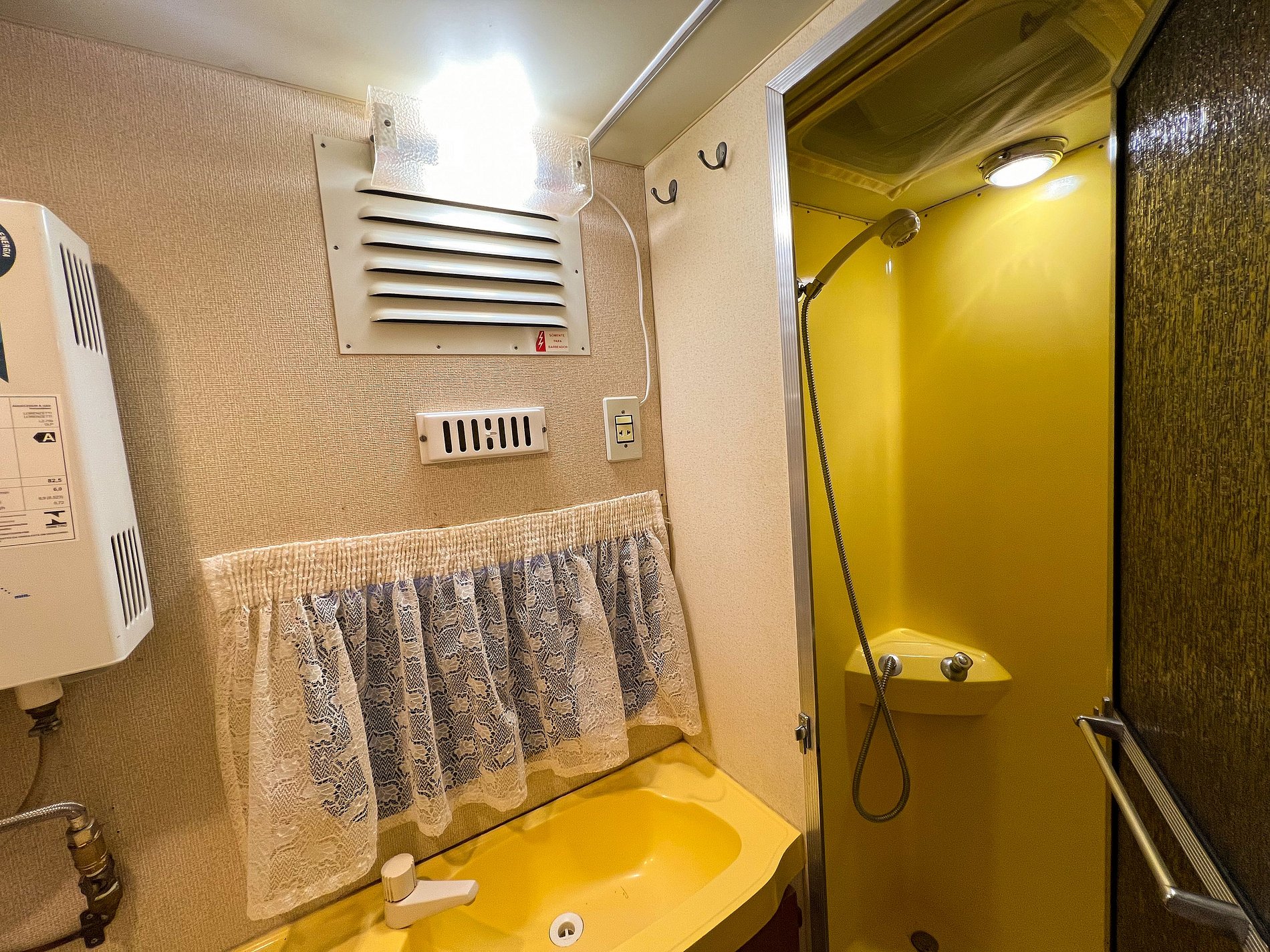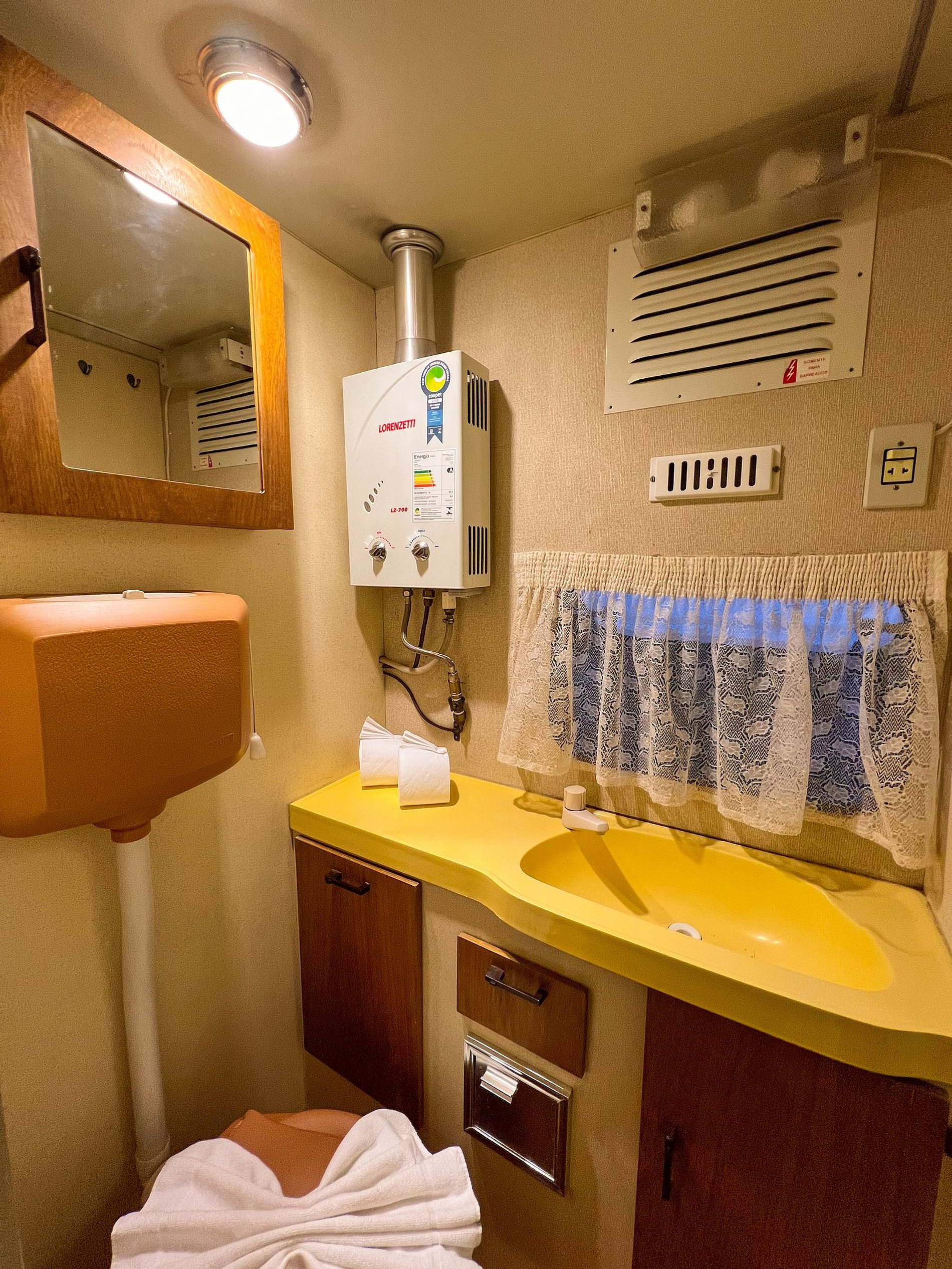 🚽🚿 Banheiro: é pequenino e compacto, proporcional ao tamanho do trailer! Mas tem água bem quentinha!🙂