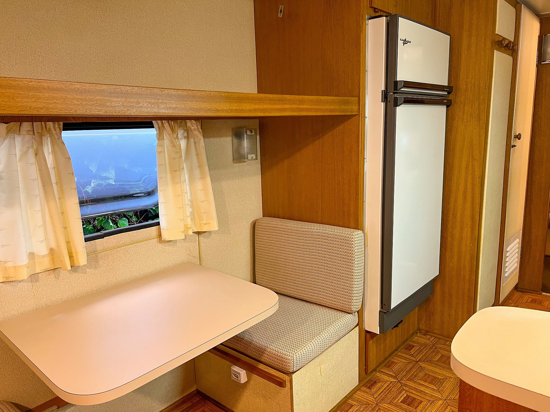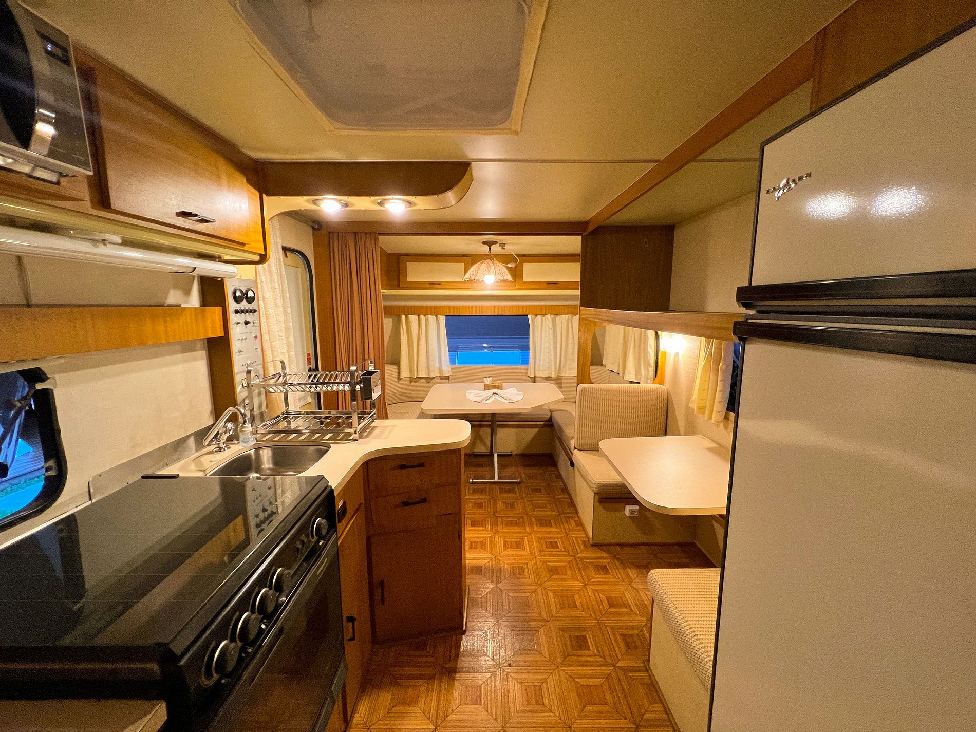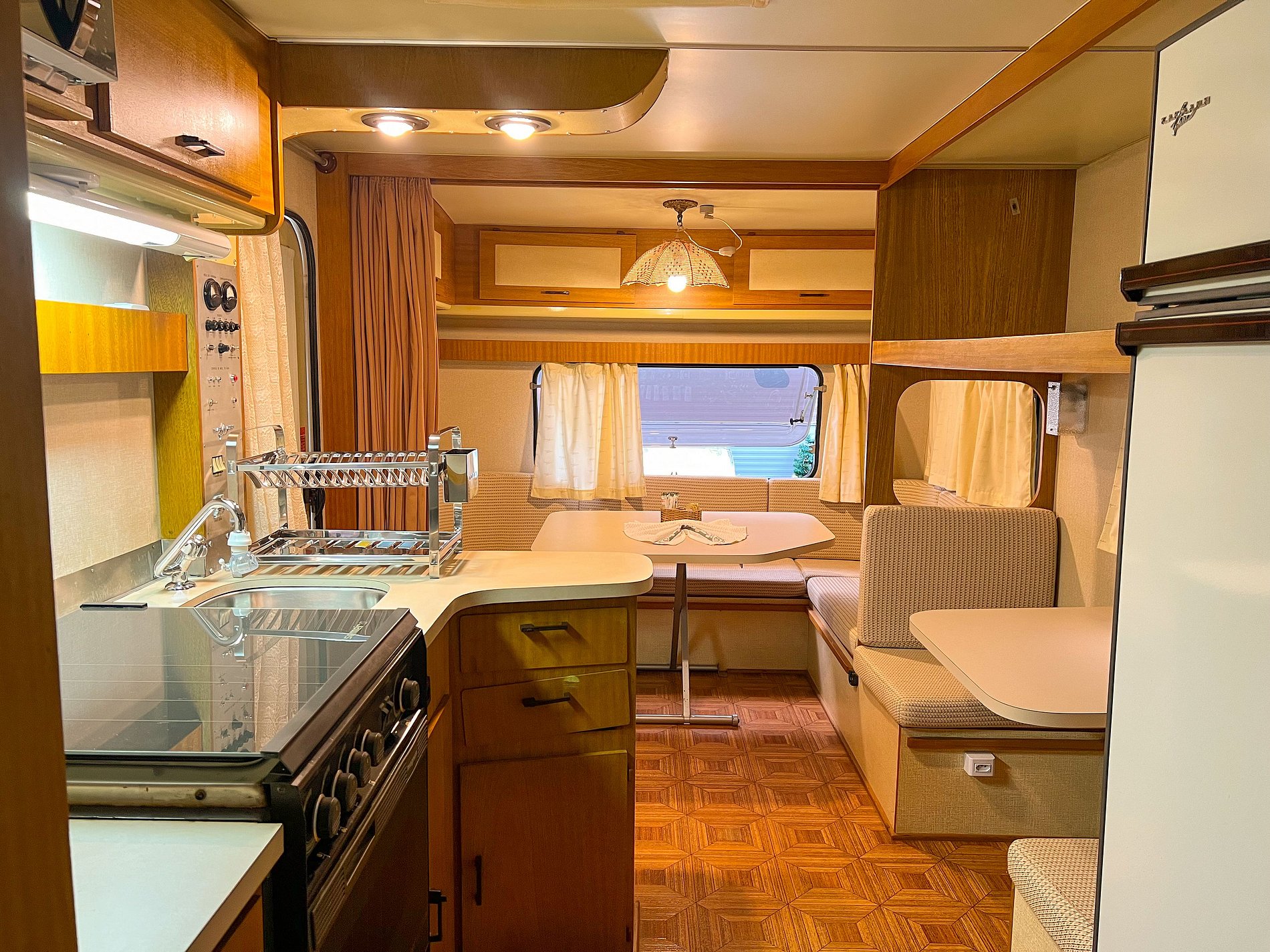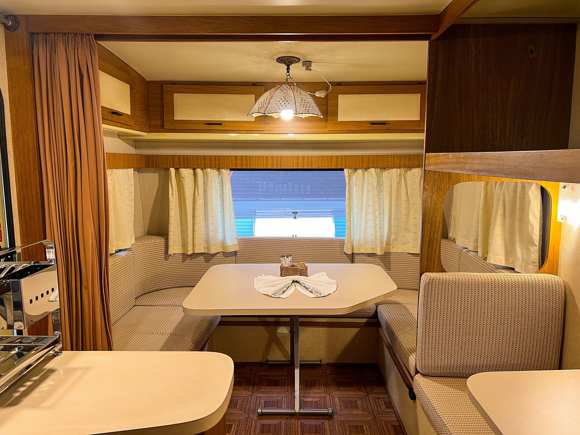 O Trailer Casablanca 1991 é uma verdadeira casa sobre rodas! Tem quarto, banheiro, cozinha com salinha e até uma varandinha com deck mesa e cadeiras na frente! 😍