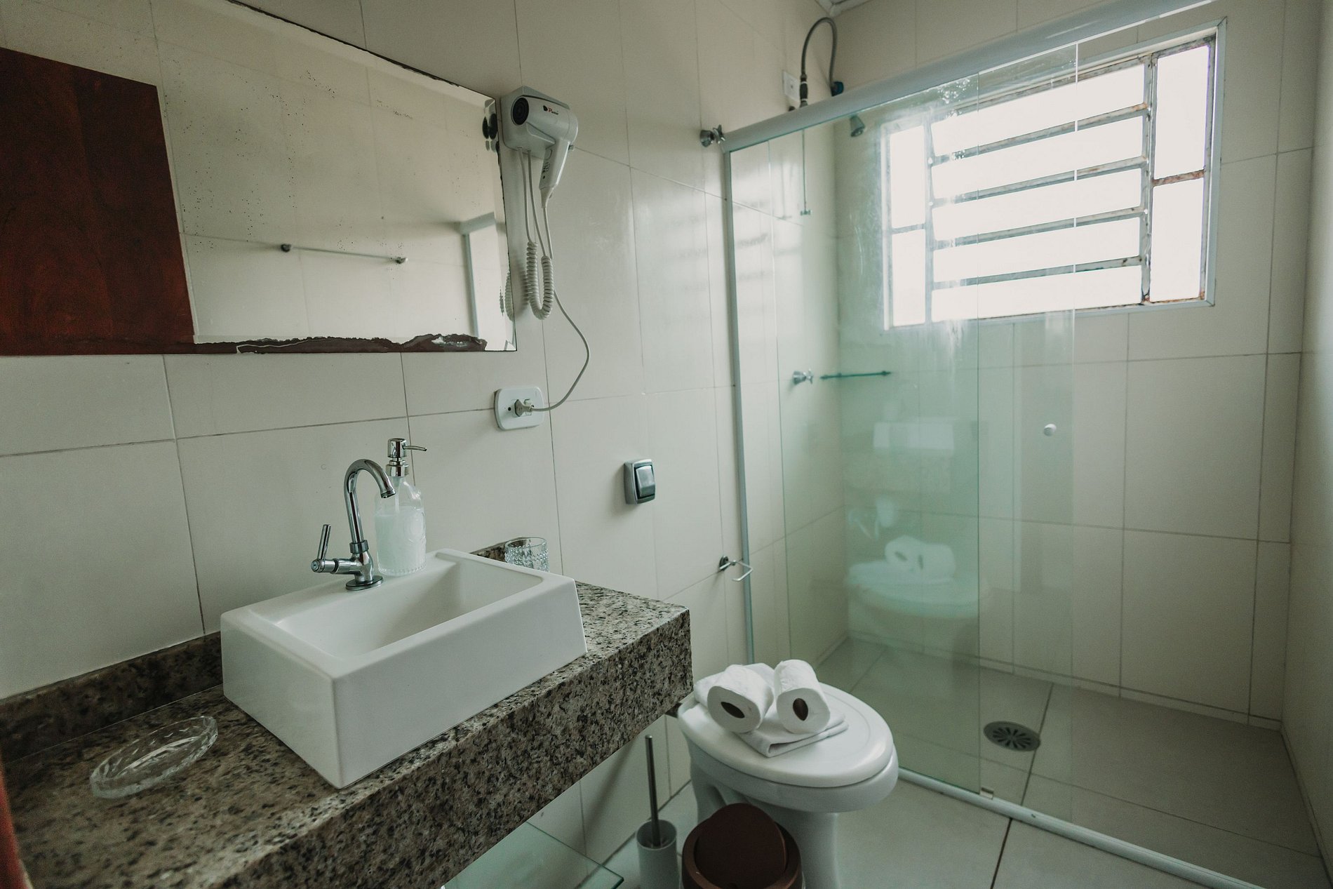 -> ÁREAS COMUNS INTERNAS: As refeições, incluindo o café da manhã podem ser consumidos na acomodação ou nos bancos da área externa.