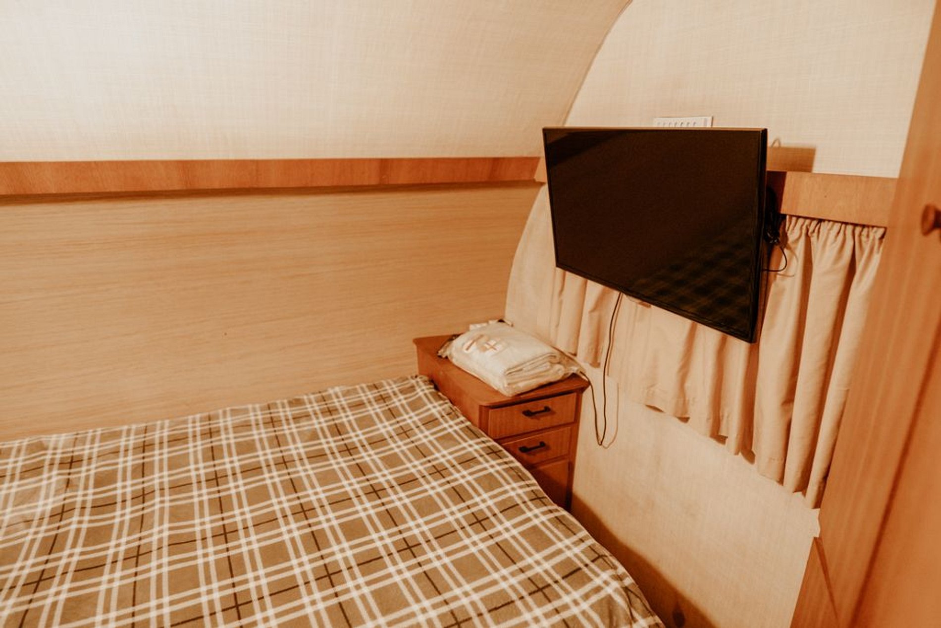 💭 Salinha: bastante funcional (Mesinha que vira a segunda cama de casal) Montamos essa segunda cama de casal, somente se reservado para mais de 2 hóspedes. (Disponível somente em trailer que acomodam mais do que 2 hóspedes)